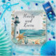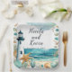 Schöne Hochzeitsfeiern mit einem schwarz-weißen Leuchtturm, Seestern und Muscheln. Ideal für eine Hochzeit. Die Wörter können geändert werden, um Ihre eigenen Angaben oder Anforderungen Anzug