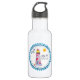 Wasserflasche zum Thema Wassersport. Ein rot gestreifter Leuchtturm und ein Beachball, mit einer lächelnden Sonne und einem Seagull abfliegen in der Entfernung positioniert in einem runden nautischen Rahmen. Personalisieren Sie mit Ihren Initialen und Hochzeitstag.