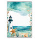 Schöne Hochzeitsstimmung mit einem schwarz-weißen Leuchtturm, Seestern und Muscheln. Ideal für eine Hochzeit. Die Wörter können geändert werden, um Ihre eigenen Angaben oder Anforderungen Anzug