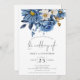 Hochzeit des QR-Codes von Navy Blue Gold Florals Einladung