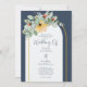 Diese Hochzeitseinladung der Marine enthält eine Aquarellfarbe erdig blühenden Rahmen ein Bogen. Der Blumenstrauß enthält goldene und gebrannte orangefarbene Blume mit einem schlängelgrünen Eukalyptus. Der QR-Code auf der Rückseite macht es den Gästen leicht, die Details für Ihren besonderen Tag und für die UAWG zu bekommen.