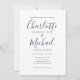Diese elegante, blau-weiße Hochzeitseinladung mit ihren charakteristischen Stilnamen kann mit Ihren Informationen in schicker Schrift und Ihrem besonderen Foto auf der Rückseite personalisiert werden. Entwickelt von Thisisnotme©