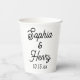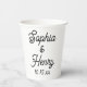 Diese eleganten Skripte modernen typografischen Schwarz-Weiß-Papier Tassen machen die perfekte Ergänzung zu jedem Ihrer Hochzeitsveranstaltungen! Personalisieren Sie mit den Braut- und Bräutigamen und dem Hochzeitstag.