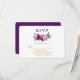 Die moderne Elegant Watercolor Lila Ultra Violet Floral und Gold Wedding RSVP Card beinhaltet violette Blumen und botanische Vegetation.