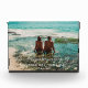 Design zeigt ein romantisches Kalligrafieschrift in Weiß mit dem Satz "Unsere Flitterwochenreise zu:". Einfache Anpassung an Ziel und Datum. Ideal für Hochzeitsgeschenke, um sich und andere zu behalten.
