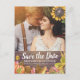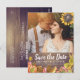 Save the Date Einladung Foto Postcard Vorlagen - Elegante Herbstmaple Blätter, Pumpkins und Sonnenblumen Aquarellfarben Blume auf rustikalem Holzhintergrund. Ein perfektes Design für Ihren großen Tag! Alle Textstile, Farben, Größen können an Ihre Bedürfnisse angepasst werden.