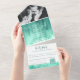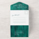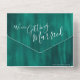 Skripttext wir heiraten Hochzeit mit einem abreißenden UAWG smaragdgrünen locker bemalten Waschbecken auf Weiß. Typografisches Skript Text abstrakte Kunst Hochzeit Einladung liest Wir werden heiraten. Einfaches modernes Design, personalisieren Sie mit Ihren eigenen Bräuten und Bräutigams Namen, Veranstaltungsort, Details und Antwortdetails wie QR-Code und Ihr Lieblings-Foto von Ihrem Hochzeitstag an der Rückseite. Dieses Design erfordert keine zusätzlichen Umschläge und verfügt über ein herausnehmbares perforiertes UAWG für einfache Antworten. Passende Hochzeitsprodukte und andere Farbvarianten im Geschäft erhältlich. © Wash Aquarell Malerei und Design von Sarah Trett für www.mylittleedenweddings.com