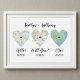 Feiern Sie stilvoll mit diesem modernen und sehr trendigen Hochzeitszeichen. Das Design zeigt die Orte und Termine, wann und wo Sie sich kennengelernt haben, verlobt wurden und Ihren Hochzeitstag. Dieses Design ist einfach zu personalisieren mit eigenen Karten, Namen und Daten und das Herz, das jede Karte markiert, kann verschoben werden, um eine exakte Position zu bestimmen.
