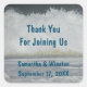 Siegel die Gunst-Tasche oder danke Ihnen für Ihre Hochzeit am Strand mit diesem günstigen Aufkleber. Der quadratische Aufkleber weist ein Foto einer Welle auf, die in Richtung Ufer rollt. "Danke, dass Sie uns beigetreten sind", die Namen von Braut und Bräutigam und das Hochzeitstermin können schnell angepasst werden.