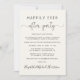 Stilvolles helles Cremetöpel oder private Hochzeitsankündigung, um Ihre Familie und Freunde oder Ihre Entstehung oder private Hochzeit zu informieren und sie zu einem Hochzeitsempfang oder Feier Party einzuladen. "Happily Ever After Party" ist vorne in einer Mischung aus einfacher Typografie und einem eleganten Drehbuch mit Swashes geschrieben. Sie können Ihre Nachricht und Einladung detaillierter personalisieren und Ihre Namen in einem signaturähnlichen Skript hinzufügen. Auf der Rückseite finden Sie Ihre Vornamen sowie Hochzeitsdaten und Empfang.
