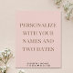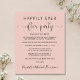 Günstige Rosa-Einrichtung oder kleinere Hochzeitsankündigung und Hochzeitsempfang oder Feier Party Einladung. Die Vorderseite zeigt "Happily Ever After Party" in einer Mischung aus einfacher Typografie und einem eleganten Drehbuch mit Swashes, und Sie können Ihre Nachricht und Einladung detaillierter und Ihre Namen in einem signaturähnlichen Skript personalisieren. Auf der Rückseite finden Sie Ihre Vornamen und das Hochzeitstermin.