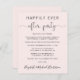 Günstige hellrosa Unterkunft oder kleine Hochzeitsankündigung mit Hochzeitsempfang oder Feste-Party Einladung. Die Vorderseite zeigt "Happily Ever After Party" in einer Mischung aus einfacher moderner Typografie und einem eleganten Drehbuch mit Swashes; personalisieren Sie Ihre Botschaft und Einladung detaillierter und Ihre Namen in einem signaturähnlichen Skript. Auf der Rückseite finden Sie Ihre Vornamen und Ihr Hochzeitstermin.
