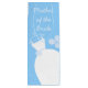 Hübsche, bridal gestaltete Geschenktasche in Blautönen mit einem stilisierten Hochzeitskleid und Blume auf blauem Hintergrund. Ein individualisierbares Design für Sie, um mit Ihrem eigenen Text, Bildern und Ideen zu personalisieren.
