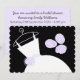 Hübsche Brautdusche mit einem stilisierten Hochzeitskleid und Blume in lila-weiß auf schwarzem Hintergrund. Ein individualisierbares Design für Sie, um mit Ihrem eigenen Text, Bildern und Ideen zu personalisieren.