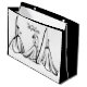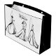 Hochzeitsgeschenktasche mit eleganten Brautbildern. Die Tasche zeigt ein schwarz-weißes Design mit dem Wort "Hochzeit elegant an der Spitze angezeigt.