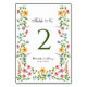 Elegante Aquarellbilder mit bunten Blumenrahmen-Tischnummern. Ideal für Frühling, Sommer, Gartenhochzeit.