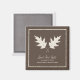 Eine Hochzeit im Herbst speichert den Datums-Magneten mit einem abgrundweißen Abbild von Eichenblättern, die mit passendem Text und Rahmen überkreuzt sind. Dunkelbrauner Hintergrund.