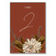 Eine elegante Terrakotta erdigen Töne fallen Aquarell Kalligraphie Signatur Drehbuch Hochzeitsdesign. Ein rustikales Herbstdesign, das Kupfertönen und botanische Blumen sowie Vintage Schriftzeichen-Kalligraphie-Typografie verwendet. Eine klassische erdfarbene Terrakotta, braun, beige Herbst Kalligraphie-Signatur Design ideal für alle Arten von Hochzeiten. Ein klassisches saisonales Hochzeitsdesign mit vereinfachenden Tischnummern. Auch die passenden Hochzeitseinladungen und andere Schreibwaren sind verfügbar. Passen Sie die Anzahl an und erwerben Sie jede Tabellennummer individuell, je nachdem, wie viele Tischnummern Sie benötigen.