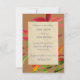 Eine moderne, rustikale und stilvolle Hochzeitseinladung mit orangefarbenen und roten Herbstblättern aus einem original Aquarellbild der Künstlerin Sacha Grossel. Der anpassbare Text ist in elegantem Skript vor einem handgemachten Hintergrund zum Thema Papier. Originelle und einzigartige künstlerische Hochzeitseinladung. Ein einfaches, elegantes Design für Ihren besonderen Tag. Herbst oder Herbst Blatt themed Hochzeit oder moderne Land rustikale Hochzeit.