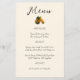 Budget Hochzeitmenü Vorlage für eine Hochzeit im Herbst. Offenes weißes Papier mit schwarzer, moderner Schrift. "Menü" oben mit zwei Gourds unten - ein Zeichen des Herbstes. Empfang Lebensmittel in einem Absatz auflisten. Beispieltext verwendet Großbuchstaben, um die Abschnitte zu trennen. Fügen Sie bei Bedarf Leerzeichen hinzu. Die Rückseite des bezahlbaren Papiers ist orange.