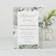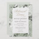 Diese modernen, minimalistischen Einladungen zum 5"x 7" Probe-Dinner mit einem abstrakten Blatt-Design in Schattierungen von staubigen Salbei, Algen und misty weise mit dem Titel, "Probe Dinner" in großen Karamellbriefen und Platzhalter für alle Details für Ihre besondere Probe.