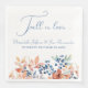 Diese individuell gestalteten Servietten bieten ein romantisches Blumenmotiv im Herbst in staubigen Blau-, Beige- und Kupfertönen. Blume, Beeren und Herbst-Blätter werden entlang des unteren Teils platziert, um einem wilden Garten zu ähneln. Kleine blaue Beeren sind mit kupferfarbenen Blume und rostfarbenen Blätter eingefasst. Die Phrase "Fall in Liebe" wird oben in einem eleganten Skript-Schriftart gedruckt, gefolgt von Beispielnamen für Braut und Bräutigam und einem Beispiel-Hochzeitstag.