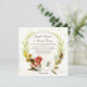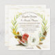 Square-Format für ein einzigartiges, auffälliges, Hochzeitseinladungs-Design. Handgemalt in Aquarell für eine reiche, elegante und moderne Touch. Der Hintergrund besteht aus einer bemalten Birkenrinde mit einem Eukalyptuskranz, einem tiefroten burgundischen Mohn, einer weißen anenomischen Blume, Federn und zahlreichen Blätter, die in einem modernen BOHO angeordnet sind, einem Bohemischen Kranz. Copyright, Audrey Jeanne Roberts, alle Rechte vorbehalten.