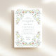 Elegante Hochzeitseinladung mit Aquarellbildern von verzierten Vintagen Rändern, die aus grünen und zarten Weinreben mit zauberhaften, gelben und blauen Singvögeln bestehen, die sich inmitten eines weitläufigen und raffinierten Designs bilden. Die Namen der Braut und des Bräutigams sind in klassischer Weise in grüner Serifentypografie und die Details der Veranstaltung sind in einfacher Weise in grün dargestellt. Ideal für Paare, die sich die populäre, tausendjährige Ästhetik zu Eigen machen und die Romantik einer vergangenen Epoche mit einer erfrischend zeitgenössischen Touch verbinden.