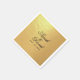 Hochzeitsnapkins für eine Hochzeit mit schwarzen und goldenen Hochzeitsfarben. Nur schwarzer Text auf Imitaten Goldfolie. Die Namen der Braut und des Bräutigams sind in einem eleganten kalligrafischen Skript geschrieben, das Datum in kleineren Kappen.