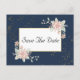 Die elegante botanische Hochzeit bewahrt das Design der Postkarte mit rosa peonfarbenen Blume auf marineblau Hintergrund und einem raffinierten Set von Schriftart. Sehen Sie sich den Link Sammlung auf dieser Seite an, um mehr Inspiration zu erhalten.