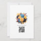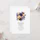 Blauer, lila, goldener und schwarzer Blütenzorn. Ideal für jede Art von Thema oder Gartenhochzeit. Der QR-Code auf der Rückseite führt zu Ihrer Hochzeitsstelle, wo die Menschen mehr und uAwg lernen können