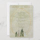 Heiraten im Wald oder am See? Diese schöne Einladung unterstreicht einen friedlichen Rahmen zwischen den Kiefern. Ein geometrischer Rahmen aus Gold vervollständigt das Bild. Liebe zitieren auf der Rückseite.