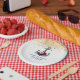 Burgunderrot und marineblauer blühender Anker Hochzeitszeitung Teller
