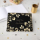 Dieses elegante Schwarze Hochzeitsladen-Set besticht durch luxuriöse Blumenmotive in Gold und Silber. Die Blume und Blätter aus Metall schaffen ein elegantes und zeitloses Ambiente, das sich ideal für feierliche Hochzeiten und Abend eignet. Der dunkle schwarze Hintergrund verleiht den Details eine besondere Note und ist somit eine ideale Wahl für Paare, die eine klassische und raffinierte Einladungs-Suite suchen.