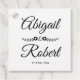 Elegante Schwarz-Weiß-Blume Gastgeschenk Hochzeit-Tag. Es zeigt Ihre Namen in einer kursiven Skriptkalligraphie Stil Typografie und den Ampersand mit zwei kleinen schwarzen Blume mit Blätter auf beiden Seiten.
