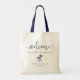 Herzlich willkommen in Ihrer Hochzeit in Urlaubsort mit diesen schicken und modernen personalisierten Taschen. Design-Funktionen "Willkommen" in marineblauer, modernen handgeschriebenen Kalligrafieschrift, mit Raum, um mit Ihrem Hochzeitsort, Namen und Datum personalisieren. Die Silhouette der Palmen wird durch einige Illustrationen ergänzt.