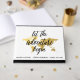 "Lass the adventure begin" Hochzeit in Urlaubsort Gästebuch mit einer Goldkarte auf bearbeitbarem Farbhintergrund (hier in weiß und schwarz dargestellt). Akzent der Callygrafie.