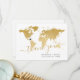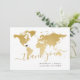 Gold Imitate Folie Weltkarte flach Dankeschön Karte mit einer personalisierten vorgedruckten Dankeschön-Nachricht auf der Rückseite, ideal für das Senden nach einer Hochzeit in Urlaubsort oder Reise-Thema Feier. Der Stift für den Standort des Herzens kann mit dem Designeditor verschoben werden.