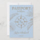 Planung der Hochzeit am romantischen Ziel? Mit diesem schönen Pass laden Sie Ihre Gäste ein und laden Sie ein mit einem Kompass-Monogramm auf staubblauem Hintergrund