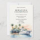 Elegante moderne Kreuzfahrtschiff oder Yacht Hochzeit in Urlaubsort Palm Trees Beach Einladung, farbenfrohe Aquarellbilder / Gemälde