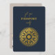 Eine marineblaue Hochzeit in Urlaubsort Passgestaltung mit goldenem Kompass und Reiseelementen. Dieses Design ist ideal für alle Frühlings-, Sommer-, Herbst- und Winter-Hochzeiten in Urlaubsort. Ein elegantes marineblau-goldenes Hochzeitsreisedesign mit Passlayout, Weltkarte und individuellem Foto. Eine moderne Hochzeit in Urlaubsort lädt zum Design mit eleganten Elementen. Es stehen auch passende Hochzeitsstilleriedateien und andere Hochzeitsformate zur Verfügung.