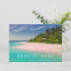 Set die Bühne für Ihre TraumHochzeit in Urlaubsort mit unserer Beach Hochzeit in Urlaubsort Save the Dates. Mit einem atemberaubenden Blick auf einen unberührten Strand transportieren diese Karten die Empfänger sofort in eine Welt der sonnengeküssten Küsten und sanften Meeresbrisen. Passen Sie Ihre Hochzeitsdetails auf der Vorderseite und ein Foto auf der Rückseite an. Egal, ob Sie sich unter schmetternden Palmen Gelübde austauschen oder unter den Sternen tanzen, dies erfasst Save the Date das Wesen Ihrer tropischen Feier. Erleben Sie die Spannung und laden Sie Ihre Liebsten ein, sich zu einer unvergesslichen Reise ins Paradies zu verbinden