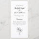 Hochzeit in Urlaubsort Zeremonie Programm mit tropischen Palmen. Set auf einem einfachen, weißen Hintergrund, Sie anpassen mit Ihren eigenen Informationen. Ein lustiges Strandthema, um Ihren besonderen Tag zu planen.
