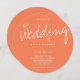 Eine kreisförmige Hochzeitseinladung mit einem lässigen, aber modernen Typografie-Design. Diese Korallenfarbeneinladung betont das große Ereignis mit dem Wort Hochzeit in einem großen, handgeschriebenen Schriftart. Die Erholung der Einladung liegt in einer sauberen, offenen Typografie, die dem Design eine solide Struktur verleiht. Diese Einladung spiegelt die entspannte, aber gut organisierte Natur Ihrer Hochzeit wider. Bereit für Karo Einladungen aus Ihrer Liste? Fügen Sie einfach Ihre Informationen hinzu, fügen Sie diese laden Sie in Ihren Warenkorb, und haben eine tolle Hochzeit. Lässige Korallentypografie Hochzeitsszenario | ©Melissa Patton - Designer