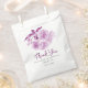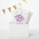 Schöne, schlichte Farbtöne von weichen violetten Blumen und Blätter danken Ihnen Gastgeschenk Hochzeit Papiertüten. Bearbeiten Sie diese Dankeschön-Taschen mit Ihren eigenen Namen und Hochzeitstermin. Ideal, um ein Stück Hochzeitskuchen reinzugeben. Moderne blühende botanische Blume Aquarellmalerei und Design der Künstlerin Sarah Trett für www.mylittleedenweddings.com