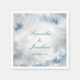 Diese elegante Wasserfarbenserviette eignet sich perfekt für jede Jahreszeit und eignet sich besonders für eine Winterhochzeit. Die Mischung aus marineblau und schiefergrauem Aquarell betont den Hintergrund mit elegantem Skripttext für die Namen der Braut und des Bräutigams.