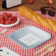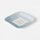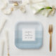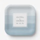 Blue Watercolor Hochzeitspapier Teller. Diese wunderschönen und eleganten, staubblauen Hochzeitszettel-Teller sind mit einem farbenfrohen, omberfarbenen Hintergrund, Braut- und Bräutigamen und Hochzeitsdatum versehen. Finden Sie passende Artikel in der Dusty Blue Watercolor Ombre Wedding Collection.