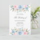 Hochzeit mit Blumen in Blau und Rosa Einladung