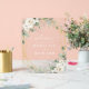 Ein Blumenzelt mit weißen Blume in Aquarelltönen und einem goldenen Rahmen. Der Text und die Farben auf diesem Hochzeitsschild Poster können bearbeitet werden.
