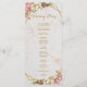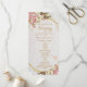 Dieses elegante, geometrische Blumenmenü kombiniert mehrere Trends des Jahres 2019: geometrisch, aus Marmor und aus Metall (Gold). Sein unregelmäßiger Rahmen hat Blume-Bouquets mit weißen und rosa Orchideen oben und unten über den oberen und den unteren Teil von zwei goldenen Hexagonen, die überlagern. Die Titel "Hochzeit" und "Hochzeitsfeier" und die Namen der Braut und des Bräutigams sind in einer kalligraphischen Schrift geschrieben. Alle Texte haben eine goldgelbe Farbe, wie der goldene Rahmen. Der Hintergrund ist aus weißem Marmor. Das Vintage Bouquet mit rosa-weißen Orchideen aus der Blume stammt aus einer Vintagen Grußkarte von Bertha Maguire (1862-1910), die jetzt im öffentlichen Bereich erhältlich ist.